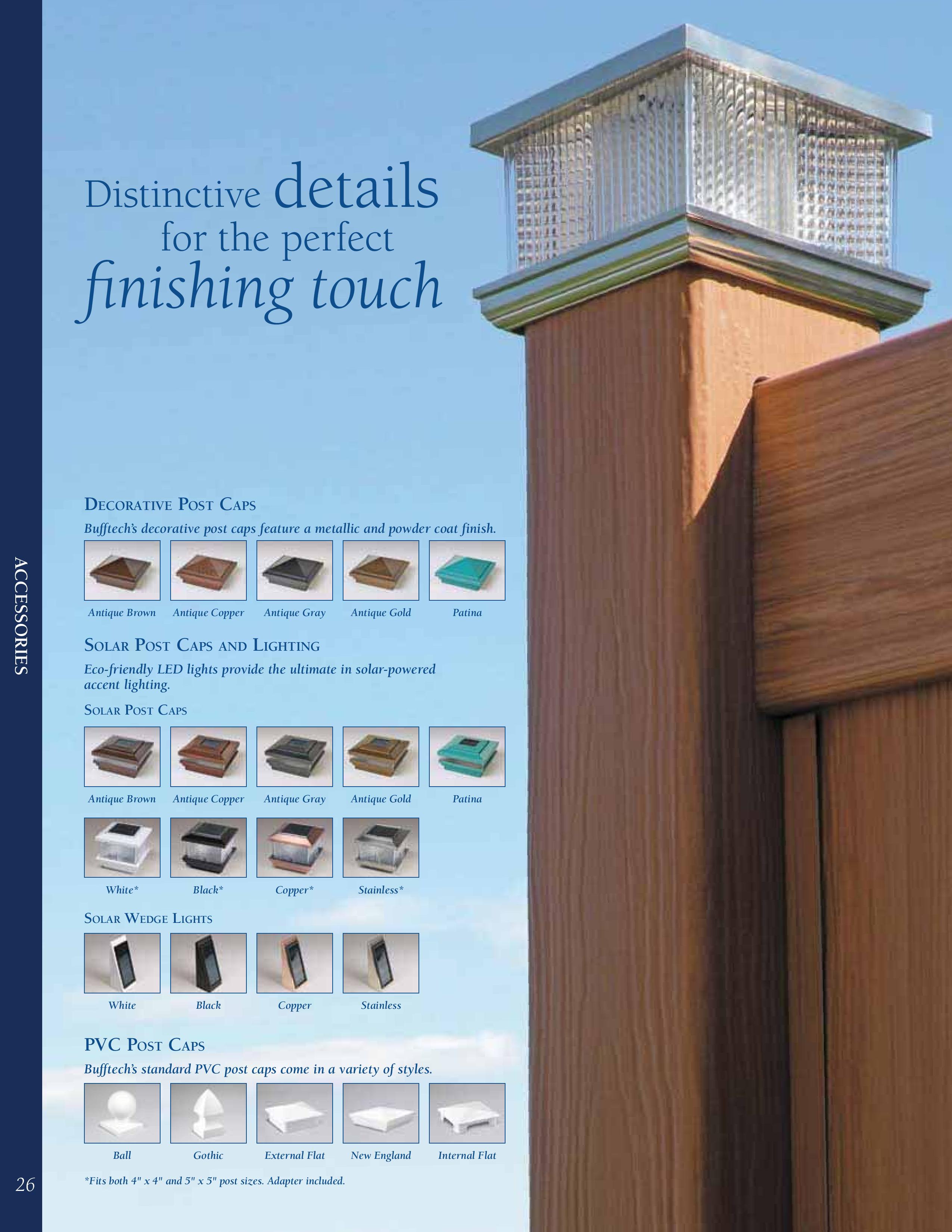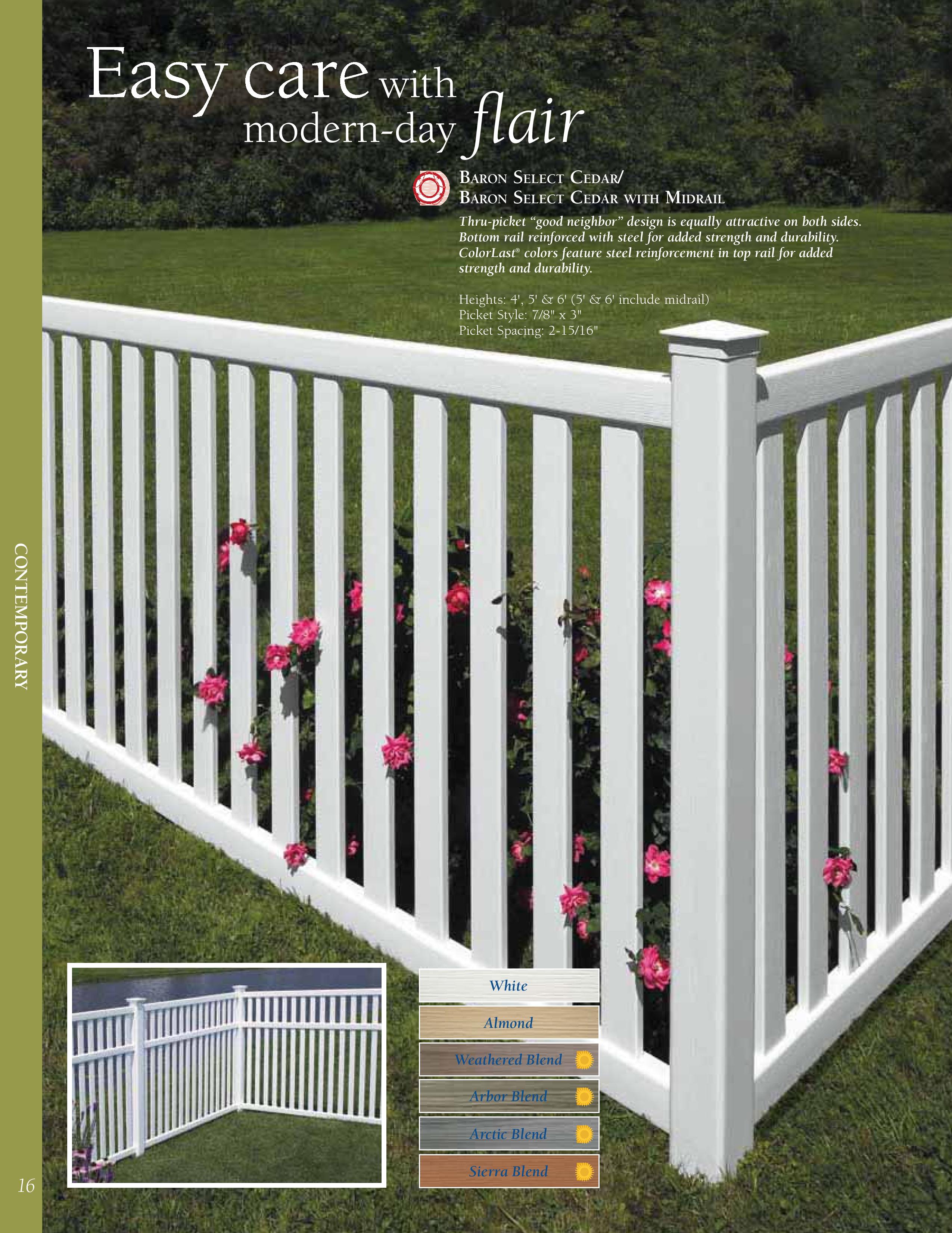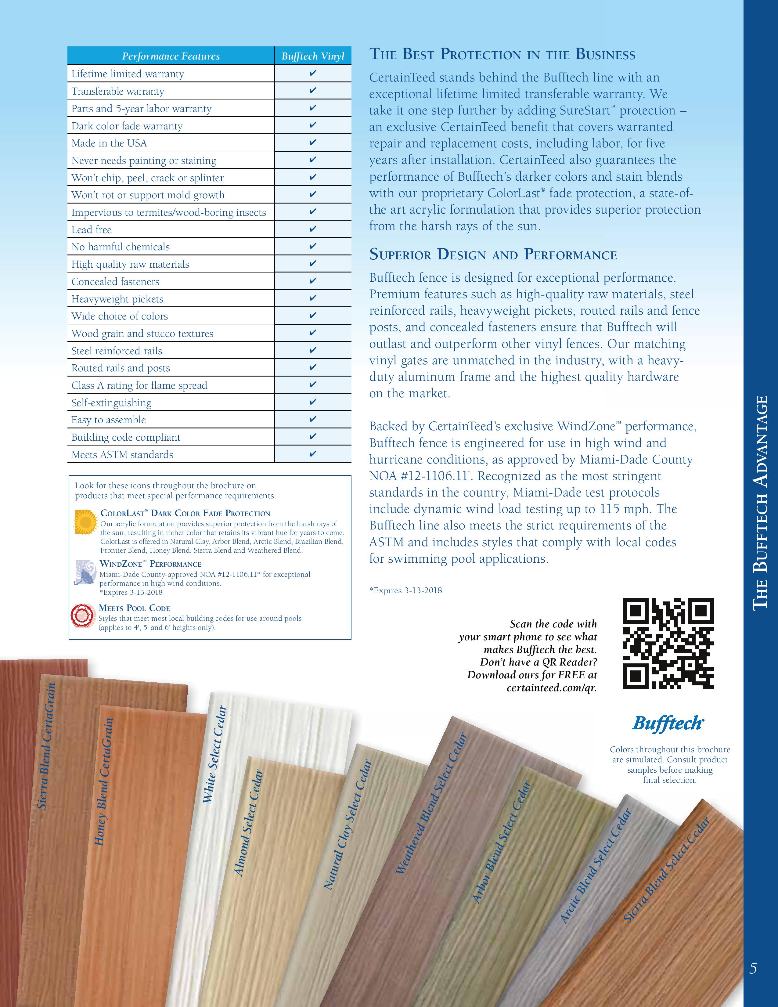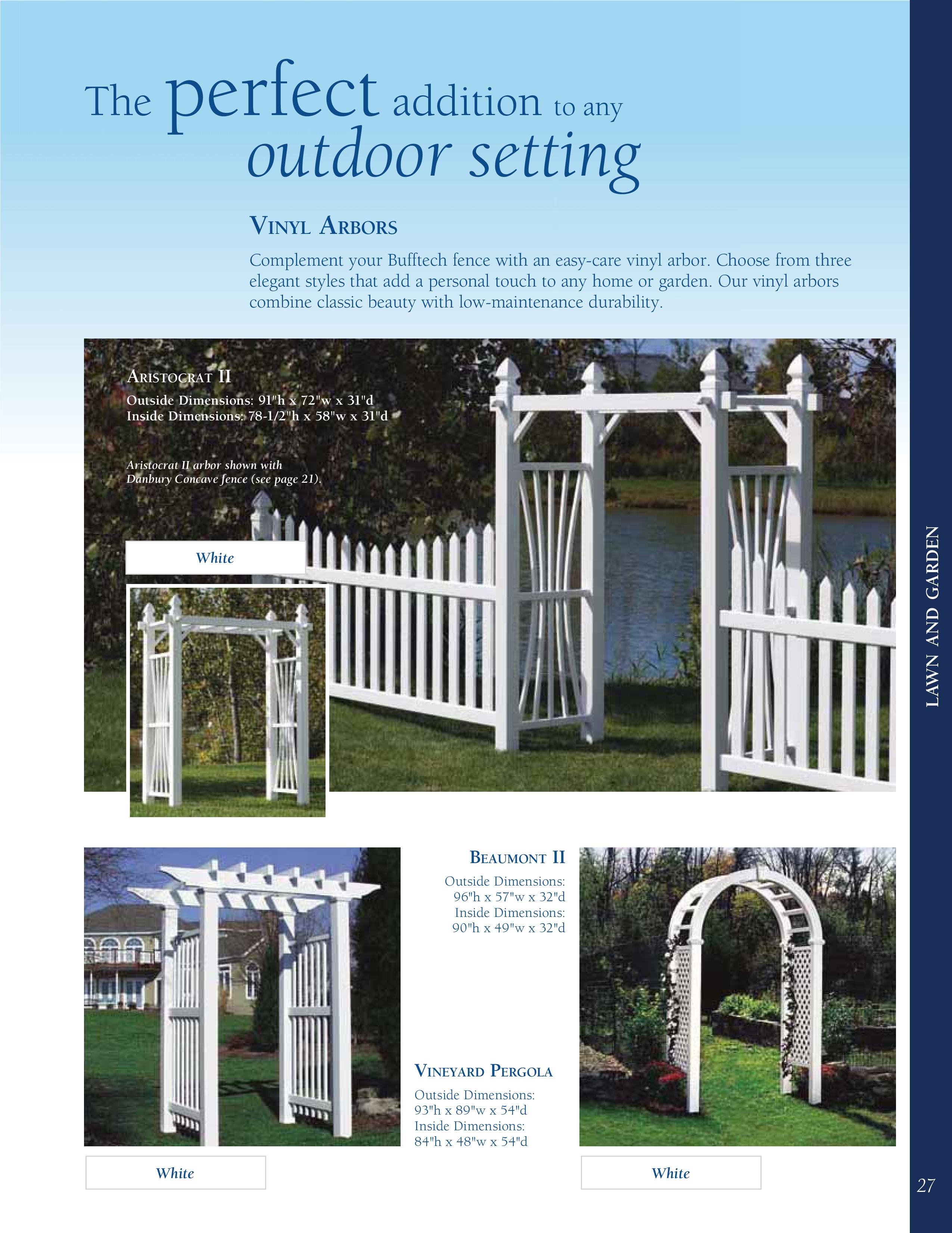 Our Bufftech vinyl fencing is distributed by CertainTeed. Vinyl fencing is very easy to clean and comes in a variety of heights, textures and colors to suit your needs. To see available products, view the brochure below. For more product brochures, visit the CertainTeed website.